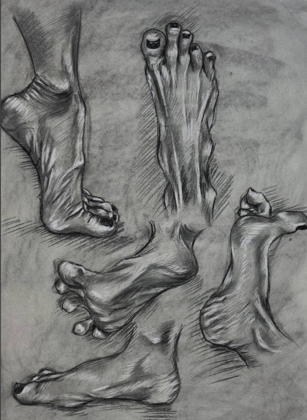 My primary medium is charcoal, but I also like to work with acrylic paint, pastels, graphite, and oil paint.
